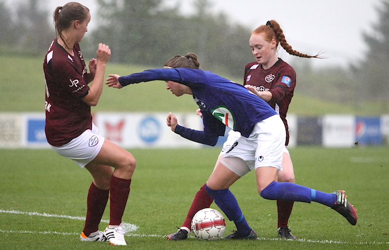 Harpa slapp síðan ein innfyrir á 20. mínútu en Gaul mætti henni framarlega í vítateig Selfoss og varði vel. Hún kom hins vegar engum vörnum við á 28. mínútu þegar Selfossvörnin náði ekki að hreinsa frá og Harpa negldi inn þriðja marki sínu á tólf mínútum.