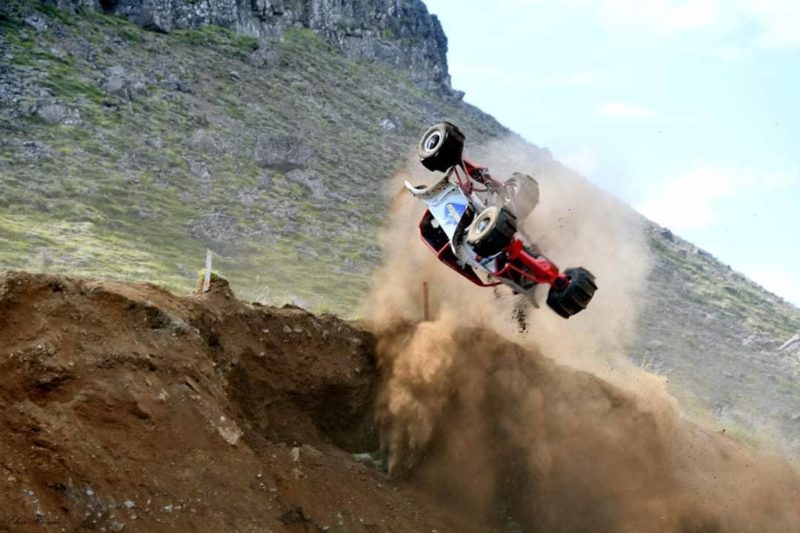Haukur bendir á að í torfæruheiminum kallist þetta ekki velta. „Veltibúr bílsins snertir aldrei jörðina. Þetta er ekki velta þó að þetta líti út fyrir að vera það. Þetta kallast tilþrif í torfæru – mestu tilþrif sögunnar.“