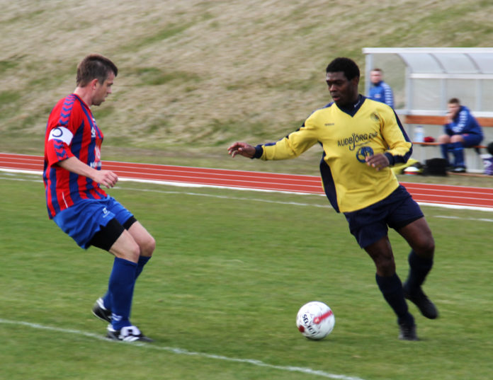 Mahop Luc Romain skoraði þrennu fyrir heimamenn og Ársæll Jónsson skoraði eitt mark. Reynir Björgvinsson skoraði mark KFR.