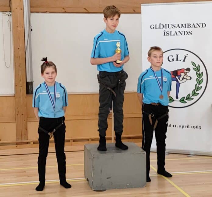 Keppendur frá Umf. Þjótanda náðu í tvo Íslandsmeistaratitla í glímu þegar Íslandsmót 15 ára og yngri fór fram í íþróttamiðstöðinni í Vogum á dögunum.