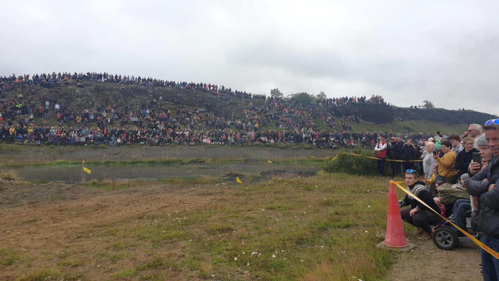 Hin árlega torfærukeppni er hluti af dagskránni Flúðir um Versló og vekur alltaf mikla lukku. Keppnin í ár var engin undantekning en þúsundir áhorfenda fylltu brekkuna við Litlu-Laxá og keppendur sviku engan með tilþrifum sínum.