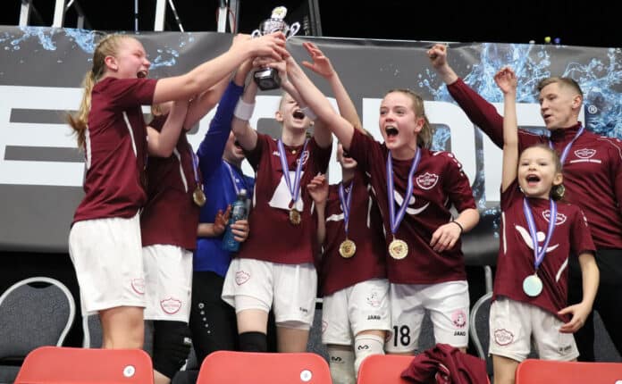 Þetta sama lið er einnig búið að tryggja sér Íslandsmeistaratitilinn í ár, annað árið í röð og fyrir tveimur árum urðu þær einnig Íslandsmeistarar þegar þær kepptu uppfyrir sig í aldri.