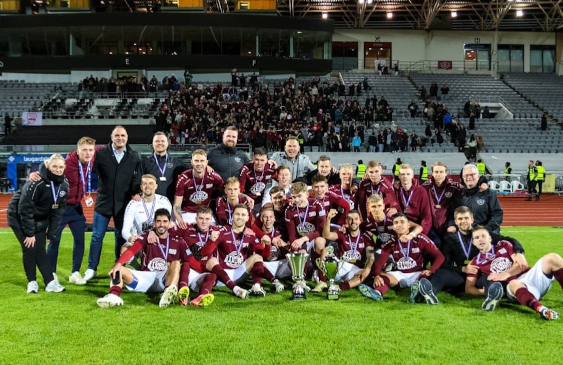 Þeir vínrauðu fögnuðu vel með stuðningsmönnum sínum í leikslok, áður en Ingvi Rafn Óskarsson, fyrirliði, hóf bikarinn á loft. Gleðin var ekki minni á Tryggvatorgi rétt fyrir miðnætti þar sem tekið var á móti liðinu með flugeldasýningu í frábærri stemningu.