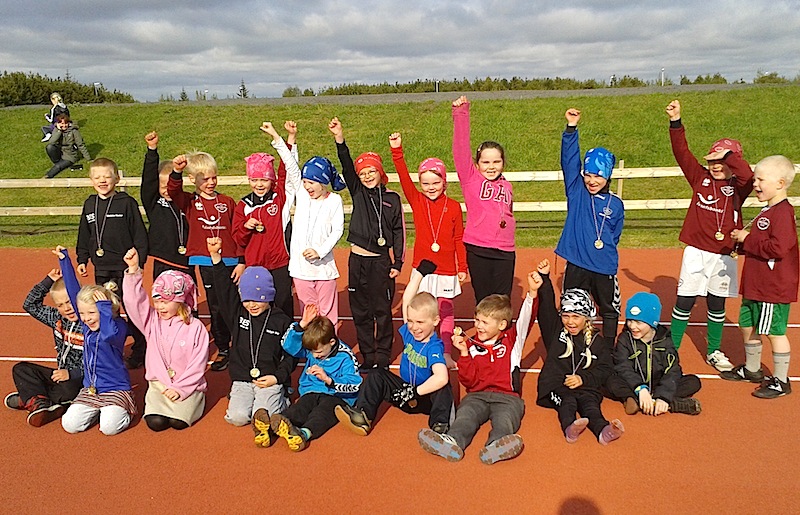 Í flokki 1.-4. bekkinga fengu allir þátttökuverðlaun en átta grunnskólamet litu dagsins ljós hjá yngstu keppendunum. Í 4. bekk setti Hjalti Snær Helgason, Vallskóla, grunnskólamet bæði í langstökki og kúluvarpi og Eva María Baldursdóttir, Vallaskóla, setti grunnskólamet í langstökki.