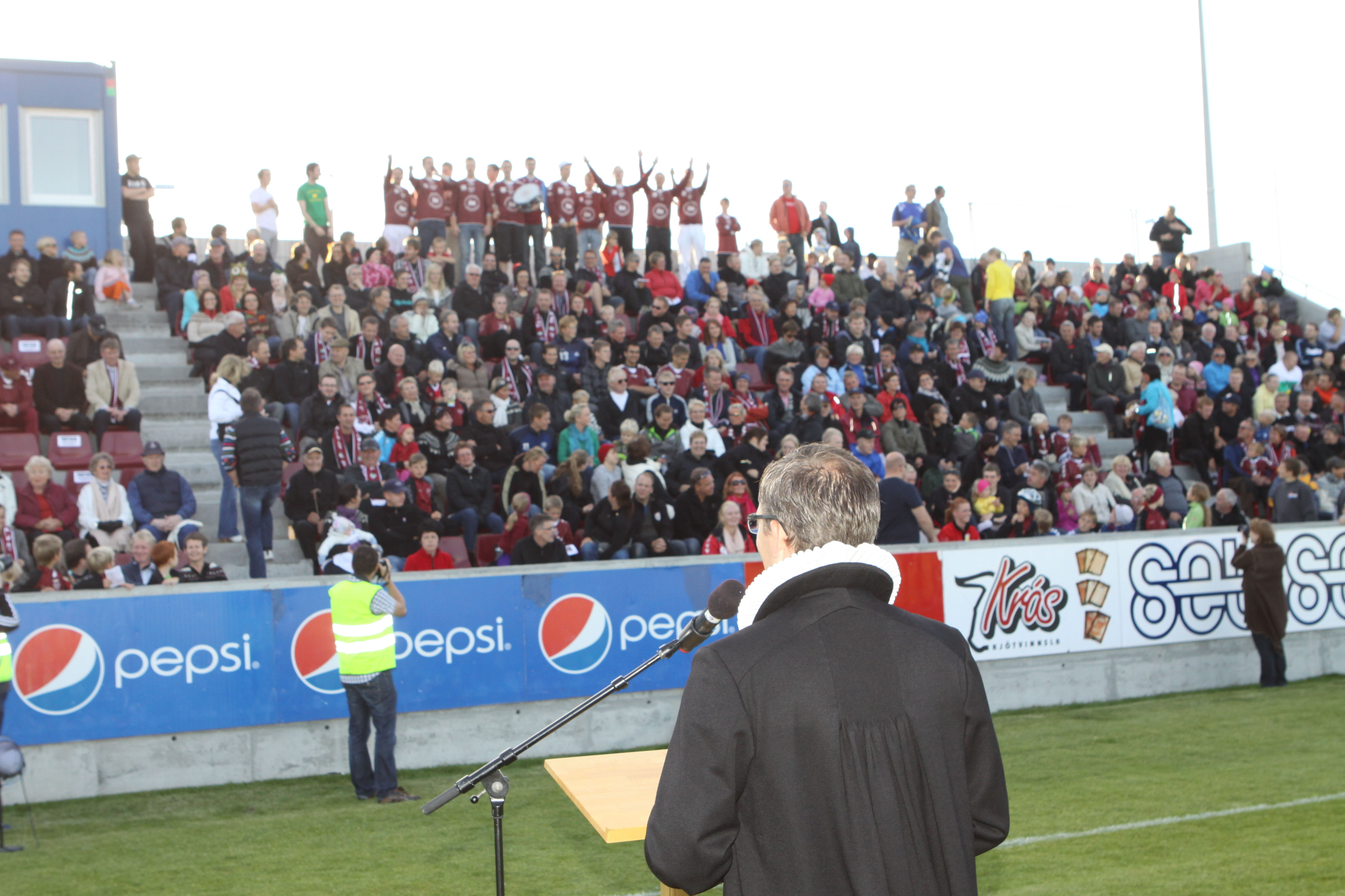 Að síðustu voru heiðursgestir leiksins kallaðir fram og klappað duglega fyrir þeim en það voru leikmenn meistaraflokks Selfoss sem sigruðu í 3. deild árið 1966 og 2. flokkur karla sem varð bikarmeistari 1966 og Íslandsmeistari 1967.