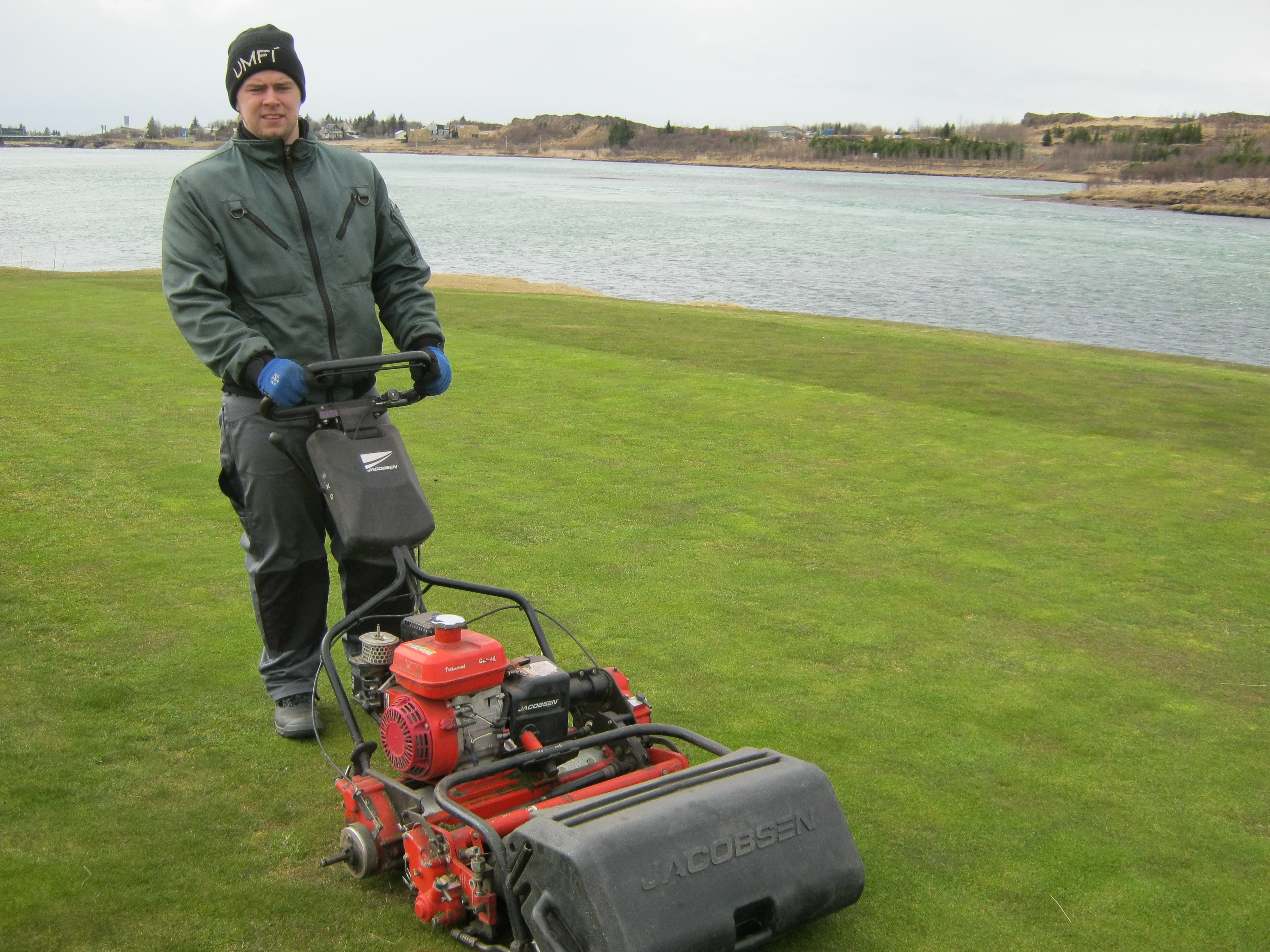 Sömu sögu er að segja um íþróttavelli Árborgar, sem golfklúbburinn sér um að slá. „Við ætlum að slá aðalvöllinn á Selfossi á morgun, hann er orðinn kafloðinn og flottur. Það er langt á undan áætlun. Í fyrra var hann sleginn 30. apríl og það var of snemmt í það skiptið,“ sagði Hlynur sem horfir björtum augum til sumarsins.