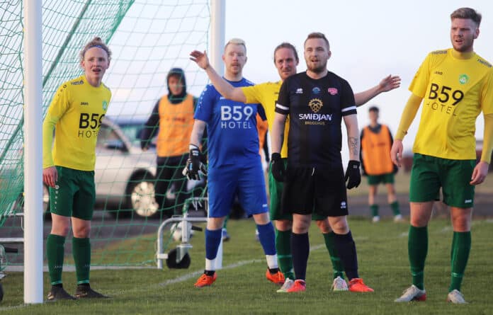 Stokkseyringar reyndu hvað þeir gátu að minnka muninn og Trausti Eiríksson kom boltanum í netið á 87. mínútu en nær komust heimamenn ekki. Lokatölur 2-3.