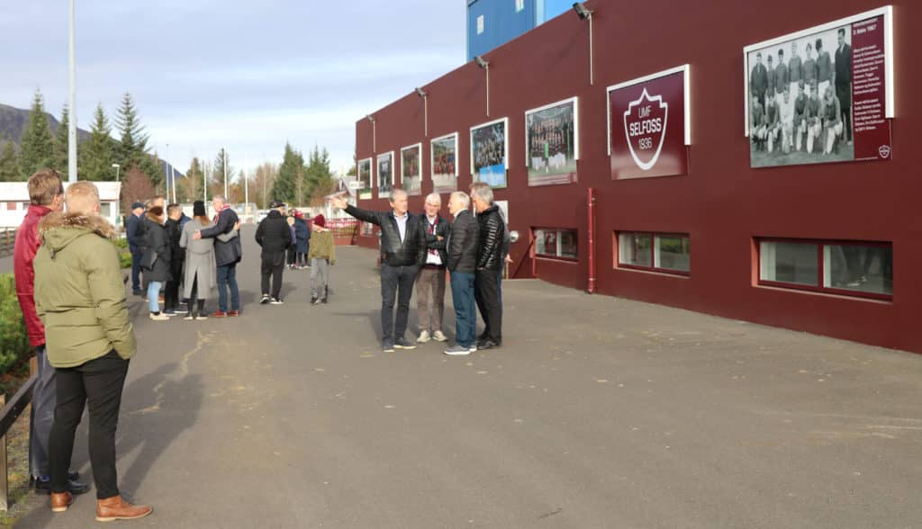 Síðastliðinn laugardag voru afhjúpaðar stórar ljósmyndir af sigursælum liðum knattspyrnudeildar Selfoss á stúkuveggnum á Selfossvelli.