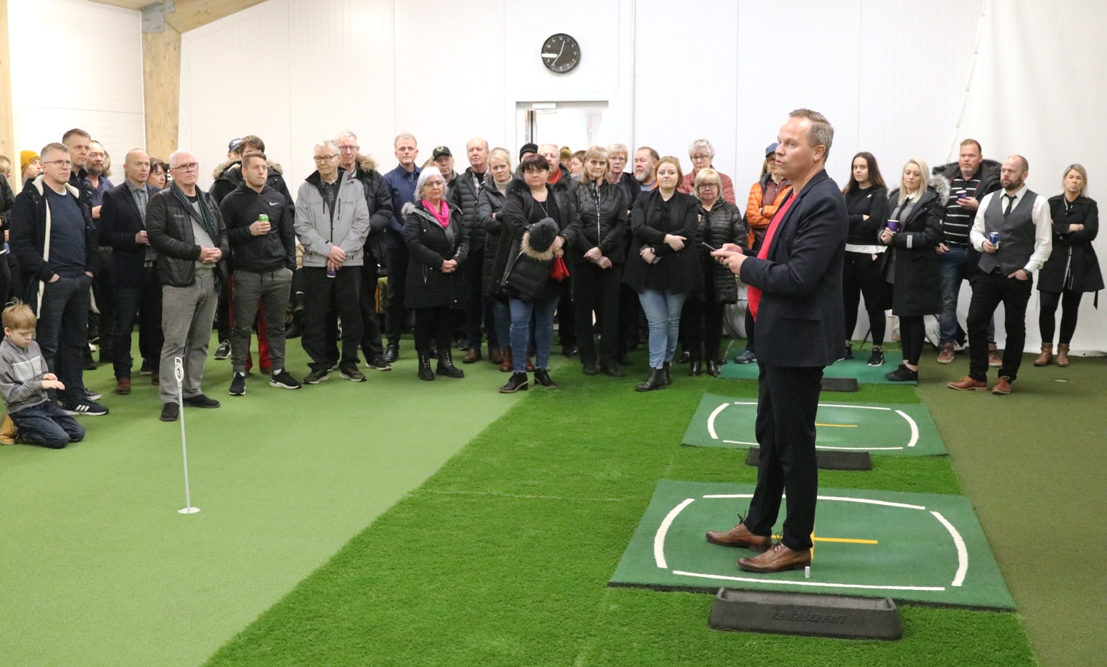 Það var fjölmenni við opnunarathöfnunina í dag þar sem félagsmenn og gestir kynntu sér aðstöðuna, prófuðu hermirinn og síðan var haldið púttmót í tilefni dagsins.