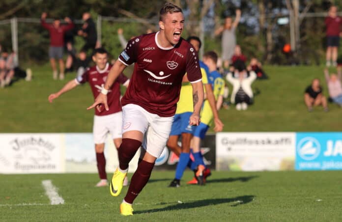 Selfoss vann dramatískan sigur á Grindavík í 1. deild karla í knattspyrnu á Selfossvelli í kvöld. Lokatölur urðu 3-2 en Þór Llorens Þórðarson skoraði sigurmarkið í uppbótartímanum.