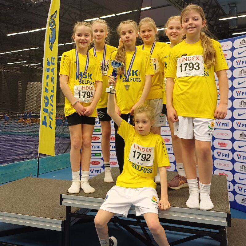 Það var gríðalega efnilegur iðkendahópur frá HSK/Selfoss sem mætti á Meistaramót Íslands 11-14 ára í frjálsum íþróttum í Laugardalshöllinni um síðustu helgi. Árangur sunnlensku krakkanna var eftirtektarverður en lið HSK/Selfoss gerði sér lítið fyrir og fékk 511 stig í heildarstigakeppninni og náði örugglega öðru sæti.