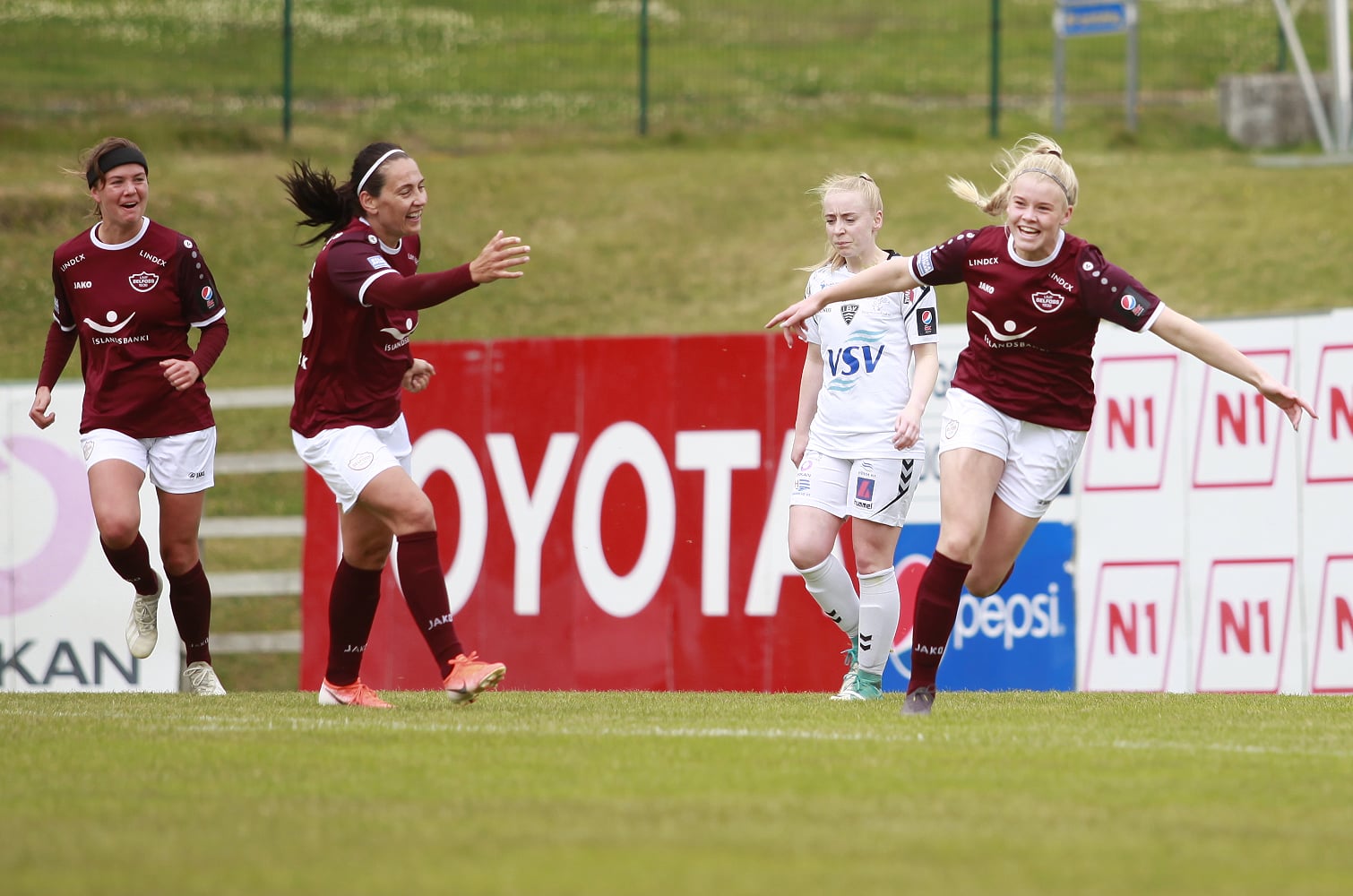 „Það er fáránlegt hvað við fáum góðan stuðning. Við eigum stúkuna hérna í Vestmannaeyjum og það er ekki í fyrsta skipti og vonandi ekki í það síðasta. Við eigum stúkuna á mörgum völlum sem við komum á og stuðningsmenn okkar eiga mikið hrós skilið fyrir að nenna að elta okkur út um allt land, og hvað þá til Vestmannaeyja í svona skítaveðri,“ sagði Anna María að lokum.