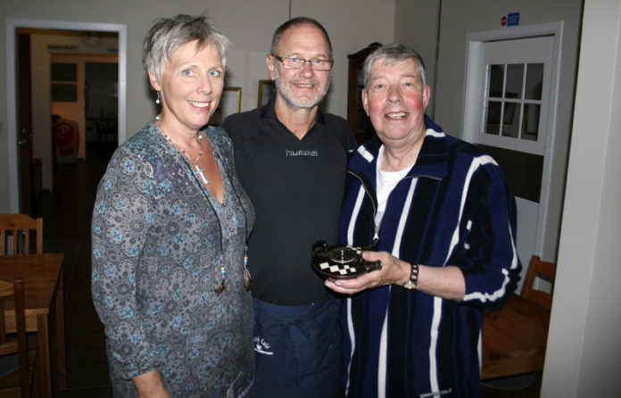 Jón fagnaði afmælisdeginum á Suðurlandi og borðaði kvöldverð í Kaffi Eldstó á Hvolsvelli með nokkrum vinum að vestan sem nú búa á Suðurland.