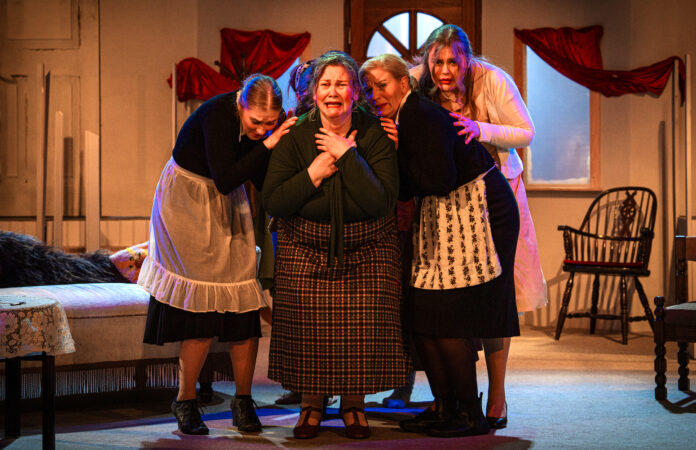 Það var mikil spenna í salnum í leikhúsinu við Sigtún síðastliðið föstudagskvöld, þegar Leikfélag Selfoss frumsýndi franska sakamálafarsann Átta konur eftir Robert Thomas í leikstjórn Rakelar Ýrar Stefánsdóttur.