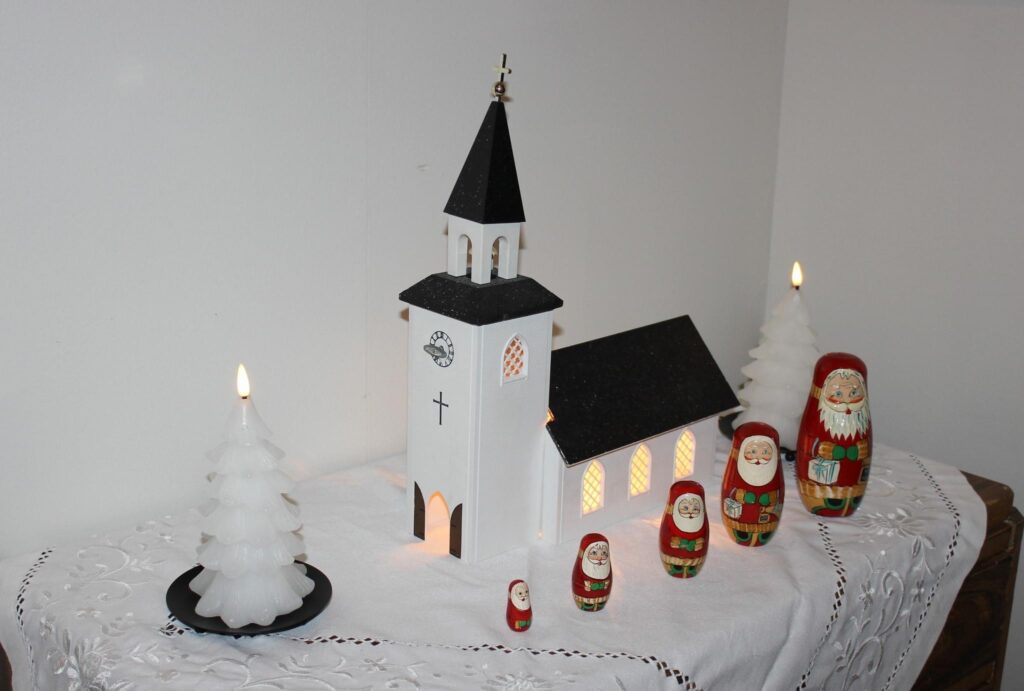 Uppáhalds jólaskraut? Uppáhalds jólaskrautið er kirkjan sem Ásta systir mín gaf mér fyrir svona 40 árum.