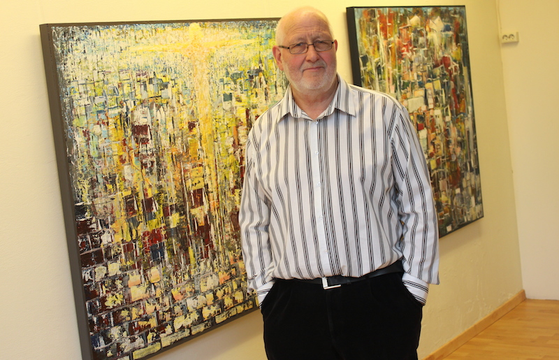 Elfar Guðni Þórðarson, myndlistarmaður á Stokkseyri, opnaði í dag sýningu í Gallerí Svartakletti í Hólmarastarhúsinu á Stokkseyri.