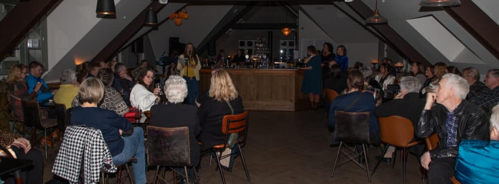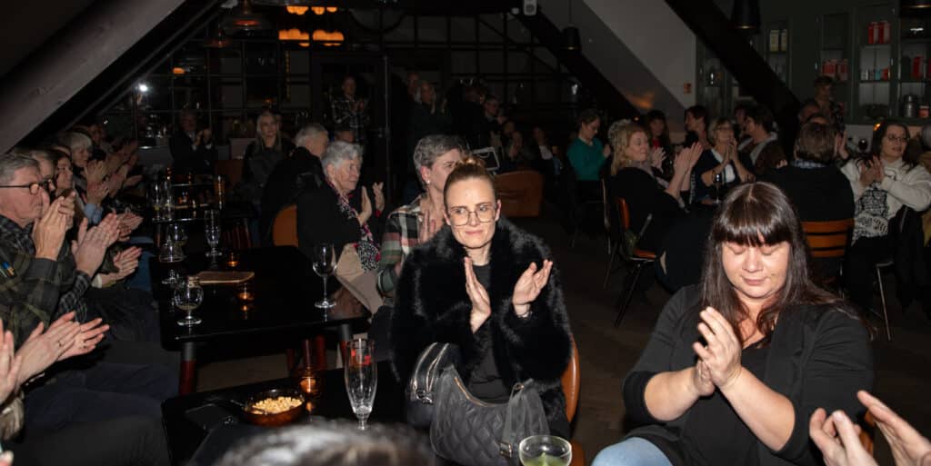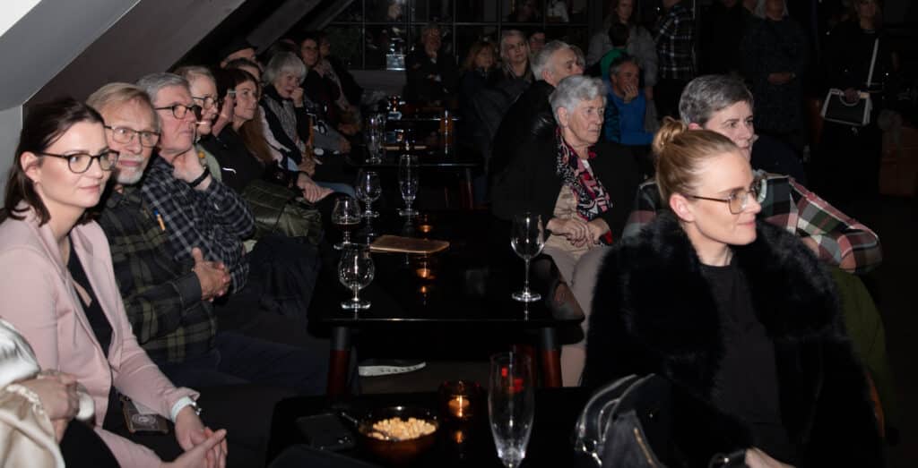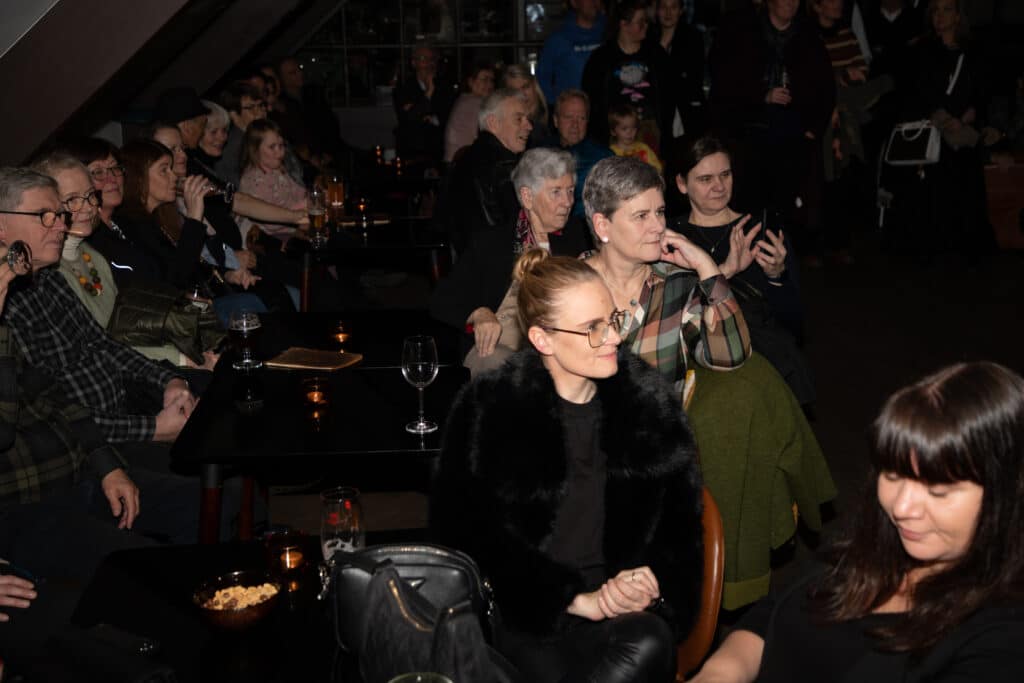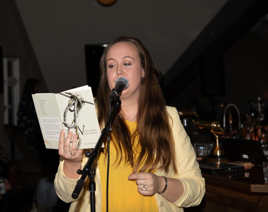 Fjölmennt var í hófinu og góðar undirtektir við upplestri og gamanmálum höfundanna. Glódís Margrét Guðmundsdóttir lék á flygilinn og spilaði meðal annars undir ljóðalesturinn.