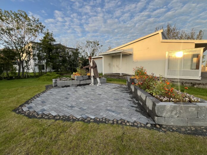 Stofnað var til samstarfs við Garðyrkjuskólann á Reykjum síðastliðinn vetur og úr varð að nokkrir útskriftarnemar í skrúðgarðyrkju, Árný Guðfinnsdóttir, Helena Stefánsdóttir, Ólafur Þórir Auðunsson og Óli Sigurjónsson, unnu lokaverkefni sitt í garðinum. Í sameiningu teiknuðum við upp hlaðin blómabeð sem hægt er að tylla sér á og helst eru ætluð einærum plöntum. Útlit þeirra, umgjörð og staðsetning var hugsuð út frá stöplum sem fyrir eru í garðinum og óreglulegu formi byggingarinnar sjálfrar. Samhliða upphækkaða beðinu var bætt í skjólbelti fyrir suð-austan áttinni með stæðilegum reynivið frá Borg og grassófa var komið fyrir í flötinni sem reynist bæði fallegur og þægilegur. Vonir standa til að þessi viðbót hjálpi við að gera garðinn að þægilegum áningarstað í bæjarlandslaginu á komandi árum og einnig til þess að framhald verði á samstarfi við þann mikilvæga skóla sem Garðyrkjuskólinn er.