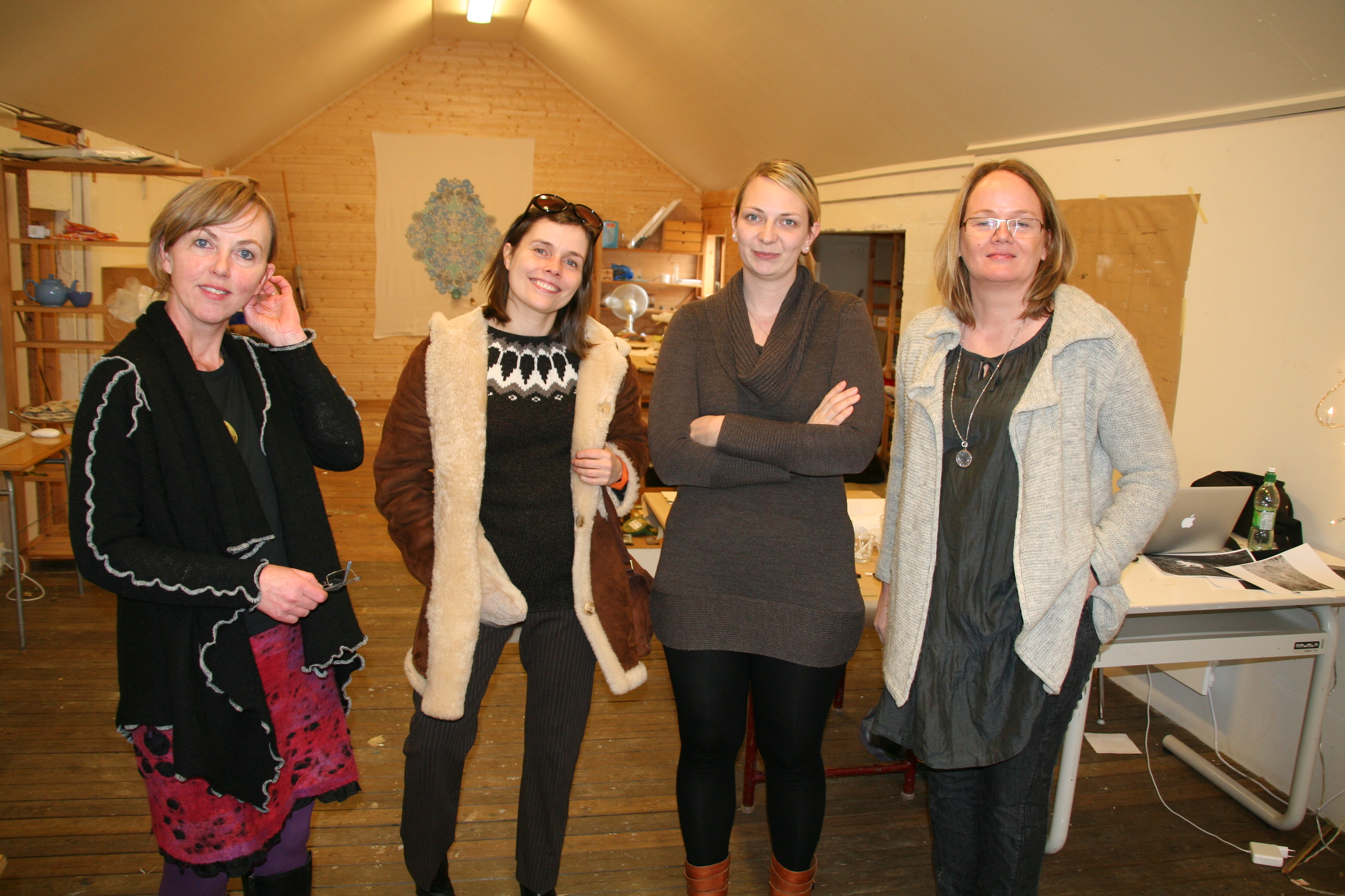 Myndin sem fylgir þessari frétt er tekin í síðustu viku þegar Katrín Jakobsdóttir, mennta- og menningarmálaráðherra, kom við í Eyvindartungu til skrafs og ráðagerða um starfsemi og framtíðaráætlanir Gullkistunnar. Á myndinni eru auk Katrínar, Gullkistukonurnar Alda Sigurðardóttir og Kristveig Halldórsdóttir og svissneska listakonan Janine Gerber.