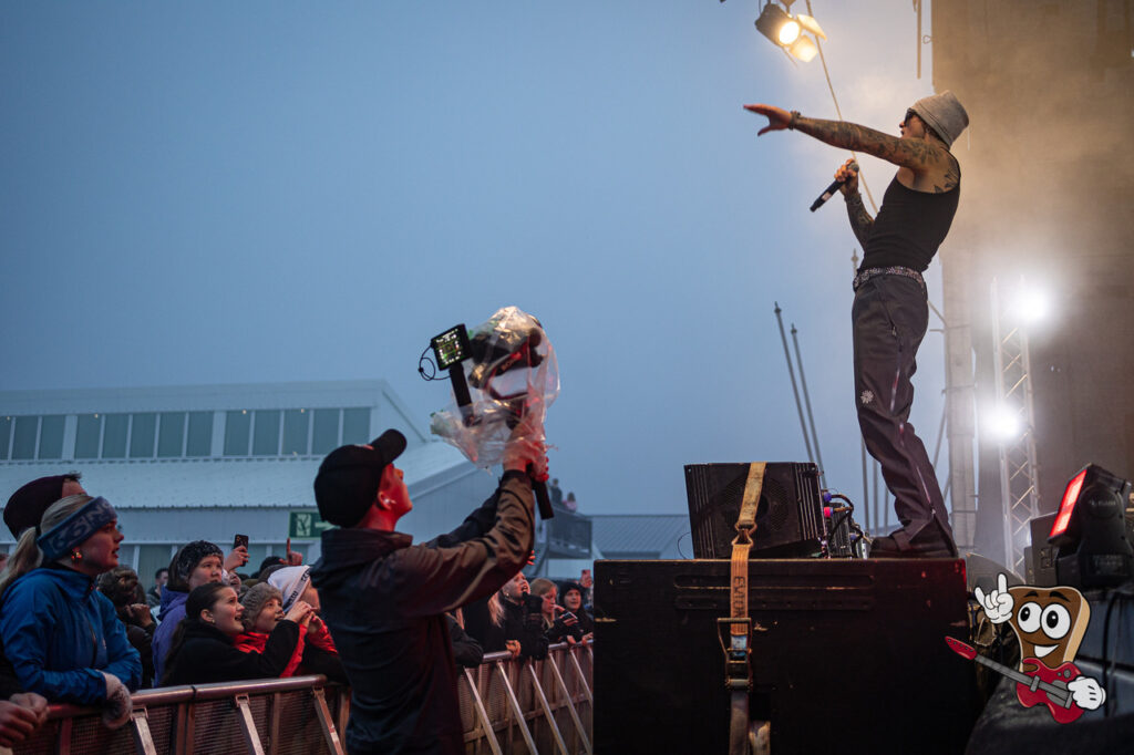Veðrið hafði engin áhrif á gesti kvöldsins sem mættu vel klæddir með góða skapið með sér og fram undan er mikil veisla í kvöld og alla helgina. Dagpassar eru uppseldir á laugardagskvöldið, örfáir dagpassar eru eftir í kvöld og enn þá er hægt að kaupa helgarpassa.