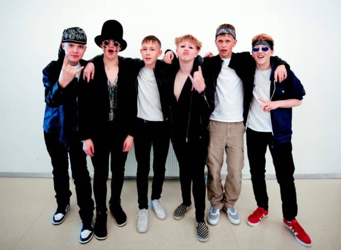 Atriðið má sjá í spilaranum hér að neðan en hljómsveitina Slysh skipa söngvarinn Gísli Freyr Sigurðsson, gítarleikararnir Björgvin Svan Mánason og Eyvindur Sveinn Lárusson, bassaleikarinn Úlfur Þórhallsson, trommarinn Stefán Gunngeir Stefánsson og hljómborðsleikarinn Hrafnkell Örn Blöndal Barkarson.