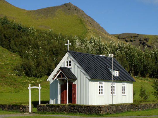 Eftir helgistundina verður svo efnt til söngstundar í gamla barnaskólahúsinu frá Litla-Hvammi þar sem gömlu og góðu ættjarðarlögin verða sungin af viðstöddum.