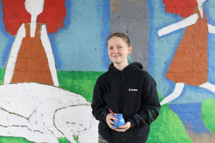 „Það er mjög mikil umferð þegar maður er að mála, maður tekur alveg eftir því. Þannig að það er lógískt að gera eitthvað hér,“ segir Þóranna en þess má geta að fyrsti veggurinn sem hún málaði var veggurinn við FSu, þegar hún var í veggjalistaráfanga hjá Ágústu Ragnarsdóttur.