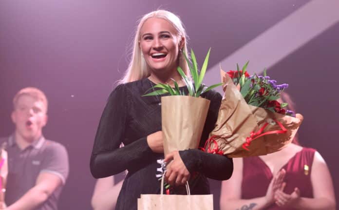 Íris Arna Elvarsdóttir frá Selfossi sigraði í söngkeppni Nemendafélags Fjölbrautaskóla Suðurlands sem fram fór í íþróttahúsinu Iðu í kvöld.