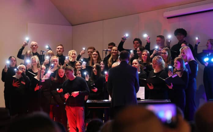 Kór Fjölbrautaskóla Suðurlands hefur verið endurvakinn og hann hélt sína fyrstu tónleika um árabil í hátíðarsal skólans í kvöld – þar sem bekkurinn var þétt setinn.