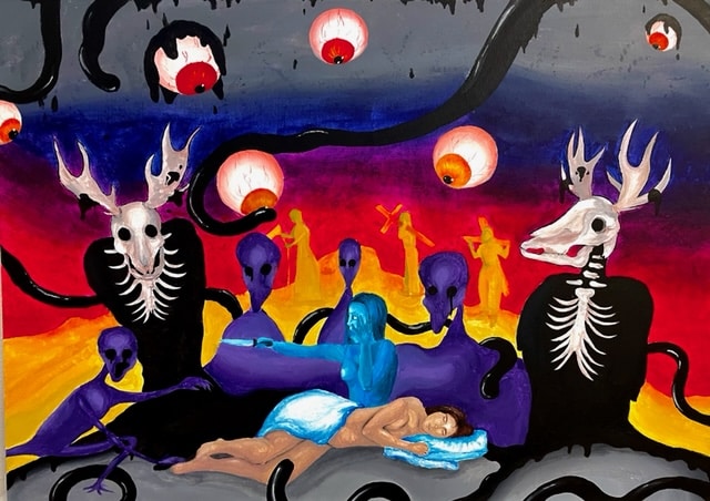 Verkin á sýningunni eru unnin á haustönn 2021. Þau eru unnin út frá skissum af lifandi módeli. Valdar skissur eru síðan unnar áfram í blýant, grafík, leir, vatnsliti og fjölbreytta blandaða tækni og lokaverkefni sem er unnið með akrýl á striga.