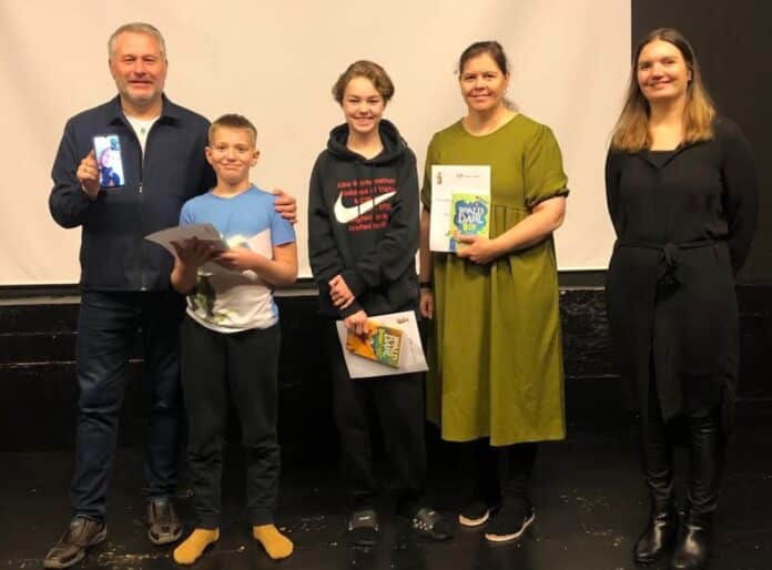 Sigmar Karlsson stigsstjóri elsta stigs og Kolbrún Vilhjálmsdóttir, stigsstjóri miðstigs, afhentu vinningshöfunum glæsileg bókaverðlaun og viðurkenningarskjal og sendir skólinn þær smásögur áfram í landskeppnina.