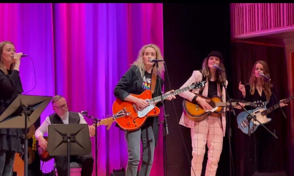 Systurnar Sigga, Beta og Elín hafa hafa verið duglegar að svara kalli fólks um að koma og syngja Með hækkandi sól og hita þar með upp fyrir úrslitakvöld Söngvakeppni sjónvarpsins á laugardagskvöld.