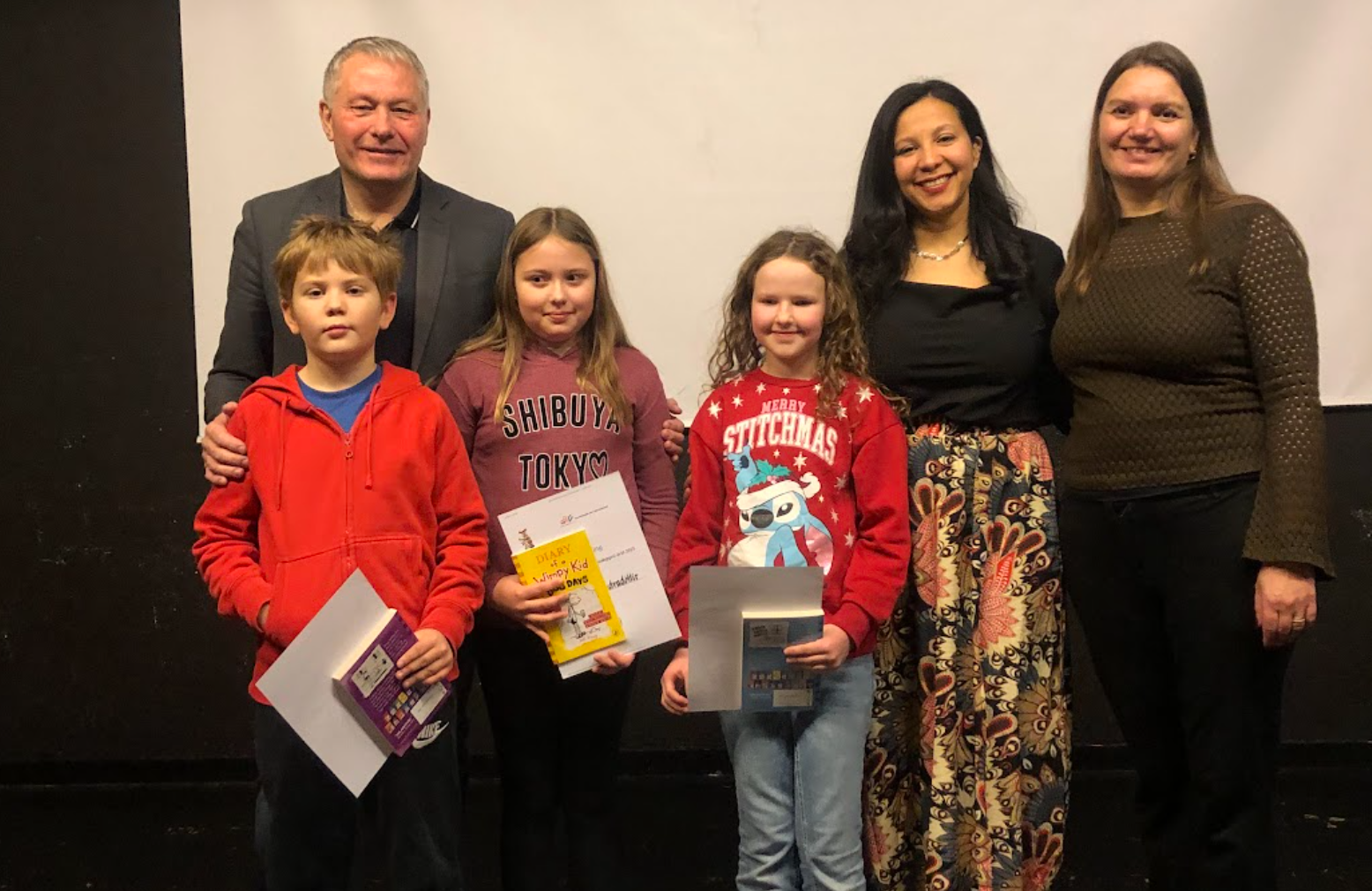 Sigmar Karlsson deildarstjóri elsta stigs og Kolbrún Vilhjálmsdóttir deildarstjóri miðstigs stýrðu athöfninni og afhentu vinningshöfunum glæsileg bókaverðlaun og viðurkenningarskjal.