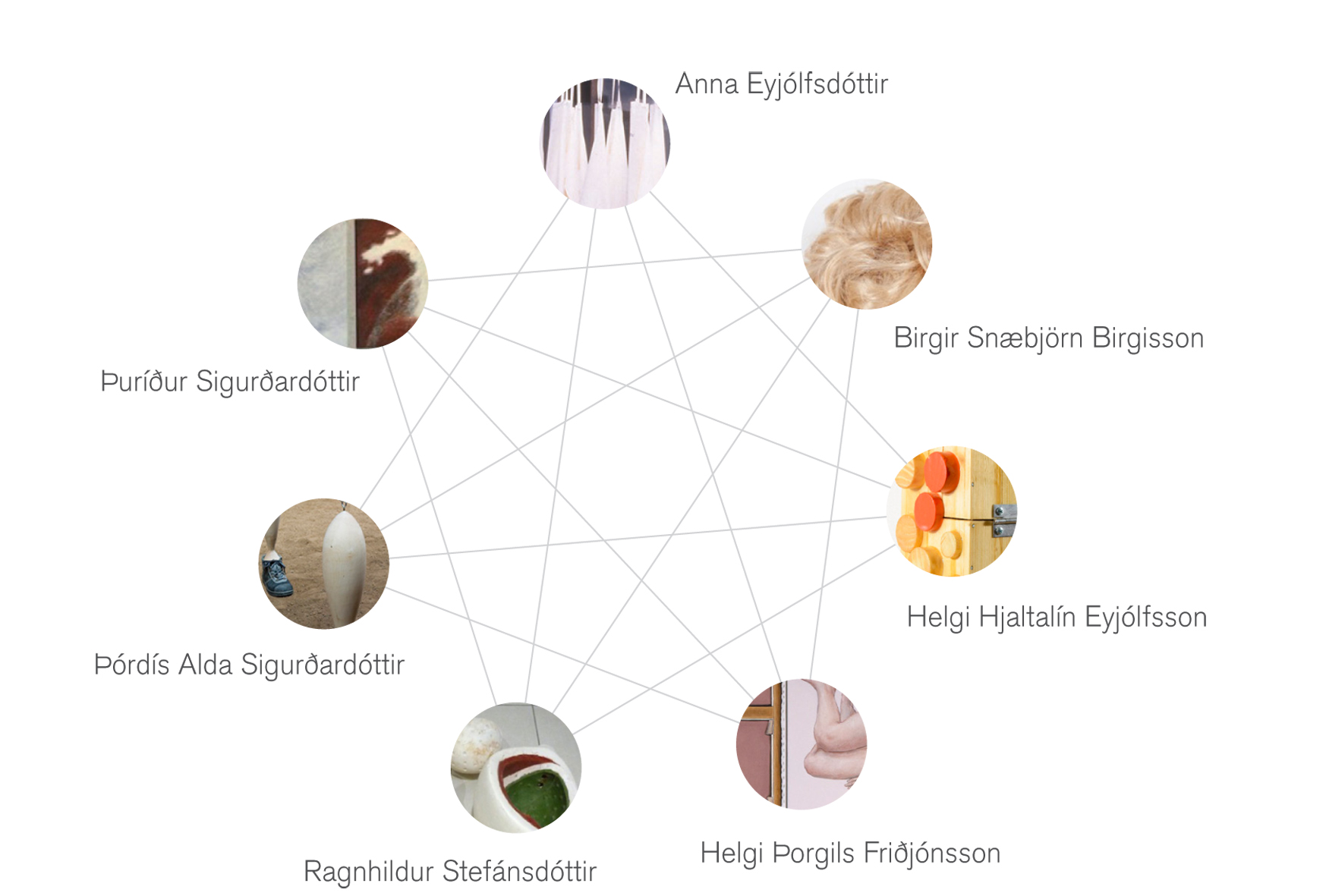Anna Eyjólfsdóttir, Birgir Snæbjörn Birgisson, Helgi Hjaltalín Eyjólfsson, Helgi Þorgils Friðjónsson, Ragnhildur Stefánsdóttir, Þórdís Alda Sigurðardóttir og Þuríður Sigurðardóttir eru höfundar listaverkanna á sýningunni.
