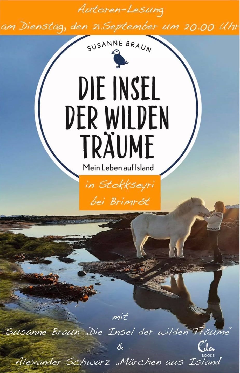 Alexander Schwarz starfar hjá útgáfunni Eden Books í Þýskalandi og færði sögur Susanne til bókar og gaf út. Sjálfur hefur hann heimsótt landið oft og skrifaði bókina Marchen aus Island um íslensk ævintýri sem hann mun lesa uppúr á þriðjudagskvöldið.
