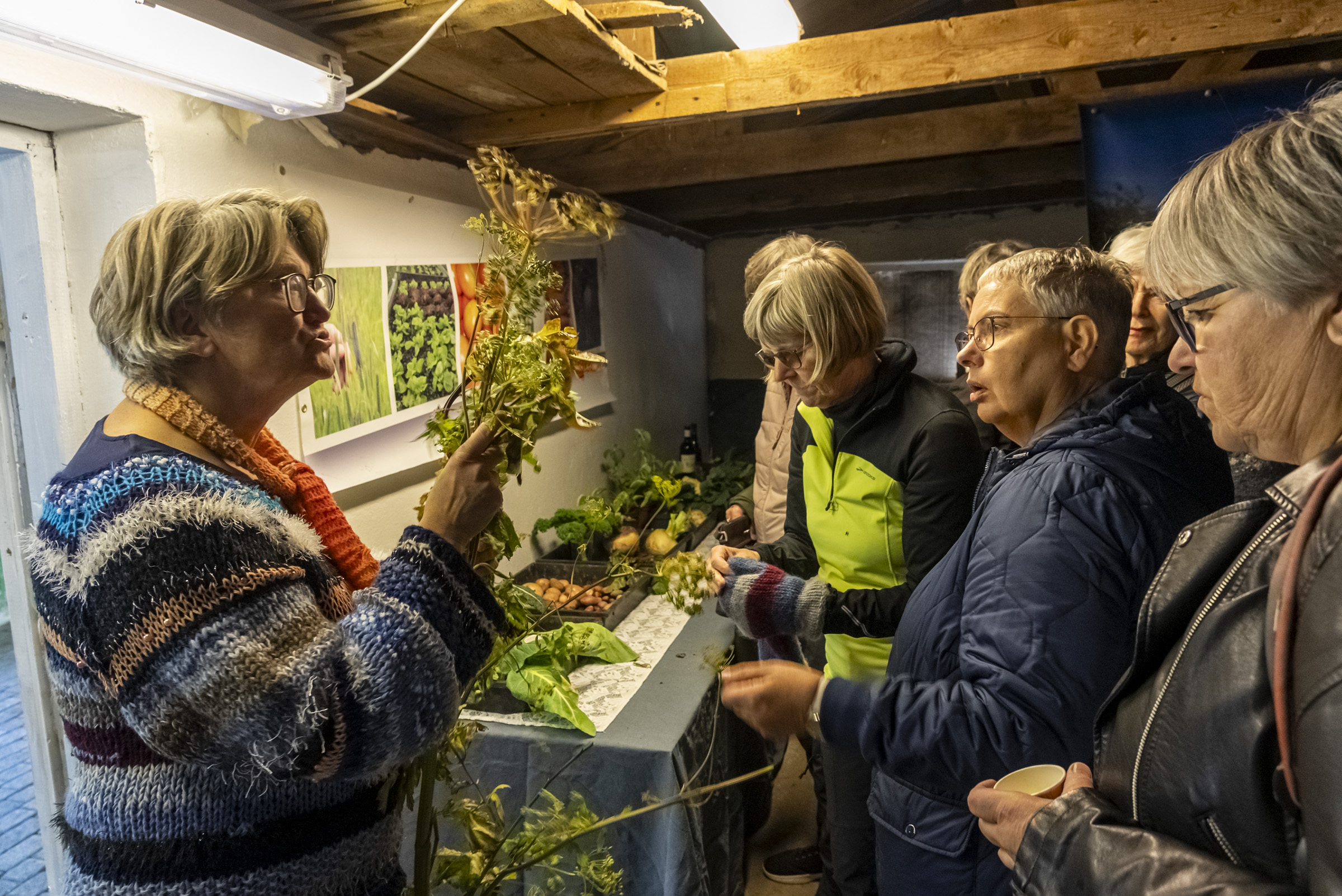 Félagsmönnum Landverndar býðst að rækta í grenndargarði Alviðru. Þar rækta nú fimmtán fjölskyldur matjurtir og unnið er að fjölgun ræktunarreita. Auður segir frá grænmetis- og kryddræktuninni og býður gestum að smakka nýuppteknar