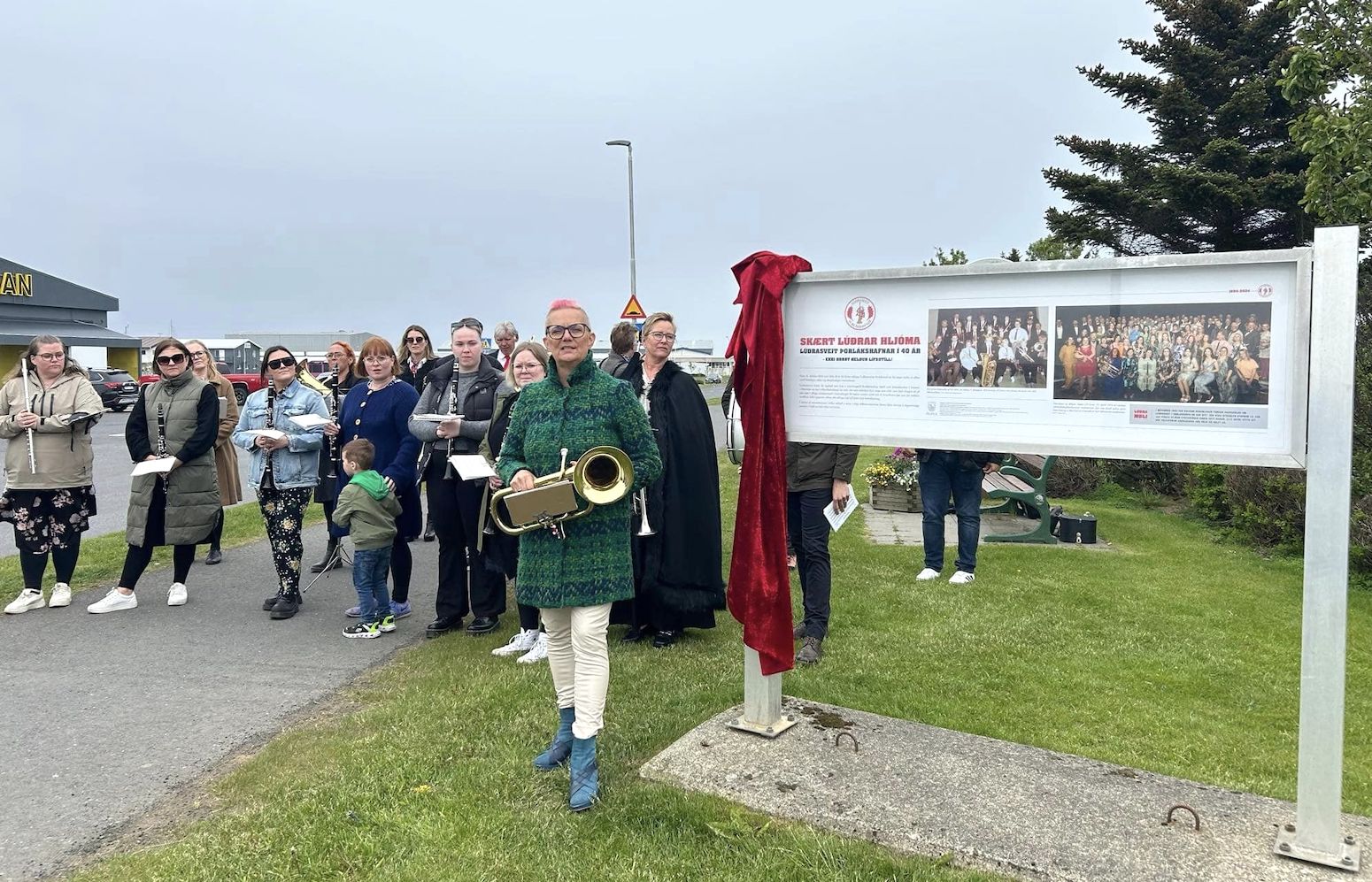 Á þjóðhátíðardaginn var afhjúpuð ný útisögusýning á Selvogsbraut í Þorlákshöfn, Lúðrasveitin í 40 ár. Ágústa Ragnarsdóttir er listrænn hönnuður útisögusýningarinnar