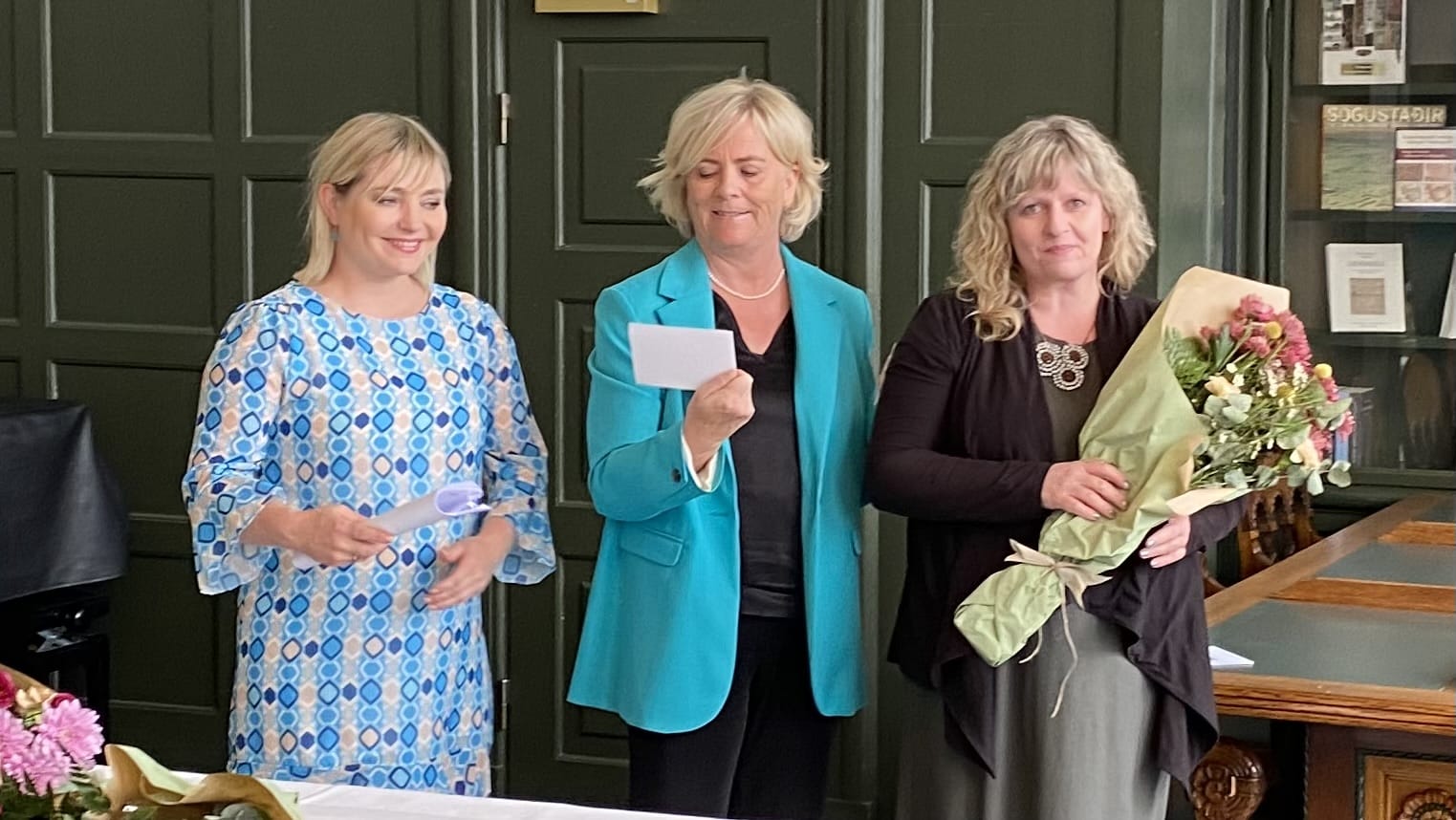 Gjöfin var afhent við hátíðlega athöfn í Safnahúsinu við Hverfisgötu en þær Lilja Alfreðsdóttir, menningarmálaráðherra og Birna Einarsdóttir, bankastjóri, afhentu gjöfina.