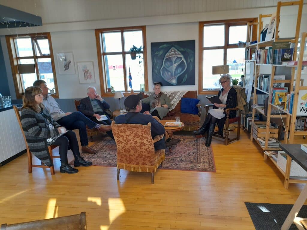 „Báða dagana var upplestur á Brimrót. Á laugardag lásu þau Harpa Rún Kristjánsdóttir og Pedro Gunnlaugur Garcia úr sínum verkum og Jón Hjartarson og Draumey Aradóttir lásu svo upp úr nýútkomnum ljóðabókum sínum á sunnudeginum. Það var frábært að fá þessa höfunda í heimsókn og þetta er þegar orðinn fastur liður á Haustgildi.“