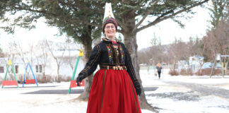 Skartaði glæsilegum faldbúning á kjörstað