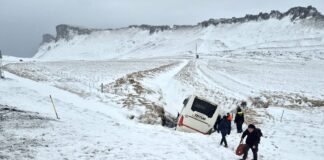 Rúta út í skurð við Reynisfjall