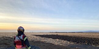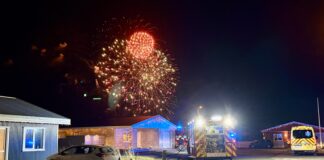 Glóð frá flugeldi kveikti í sinu