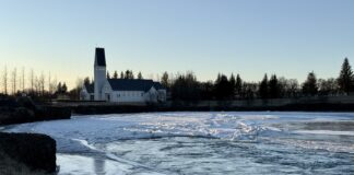 Gengu út á ísinn fyrir neðan Ölfusárbrú