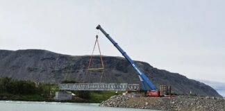 Bráðabirgðabrú hífð á Ölfusá með stærsta krana landsins