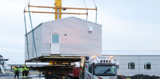 Færanlegar skólastofur fluttar á Eyrarbakka