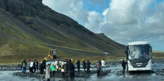 Ekki komið sumar fyrr en fyrsta rútan festir sig